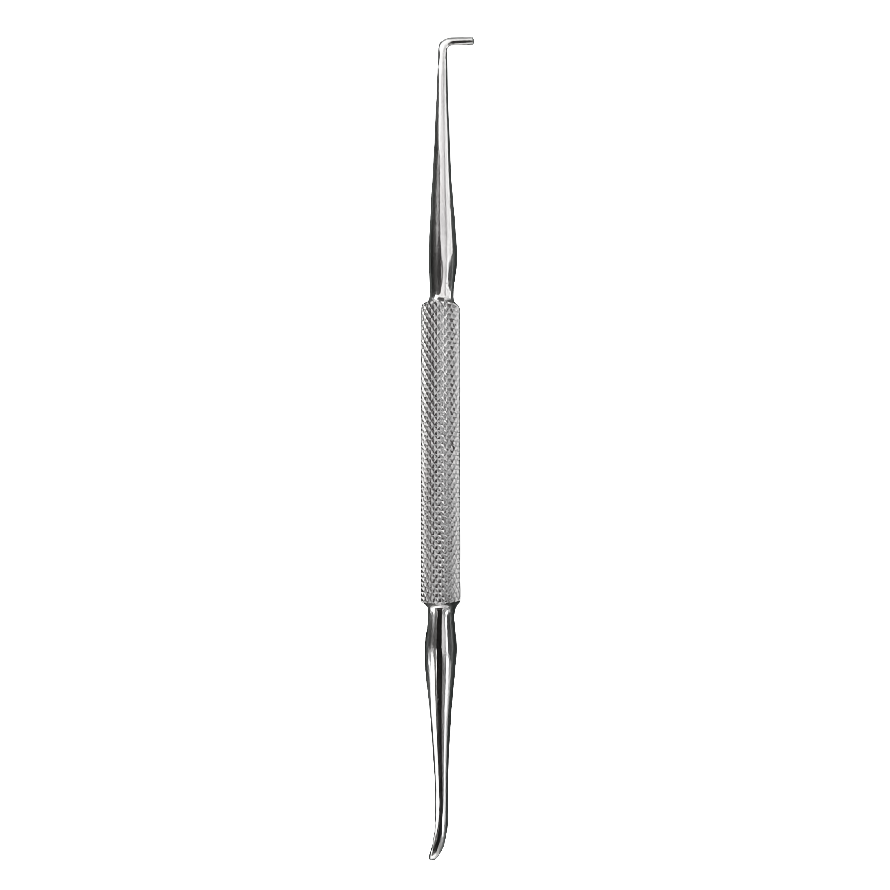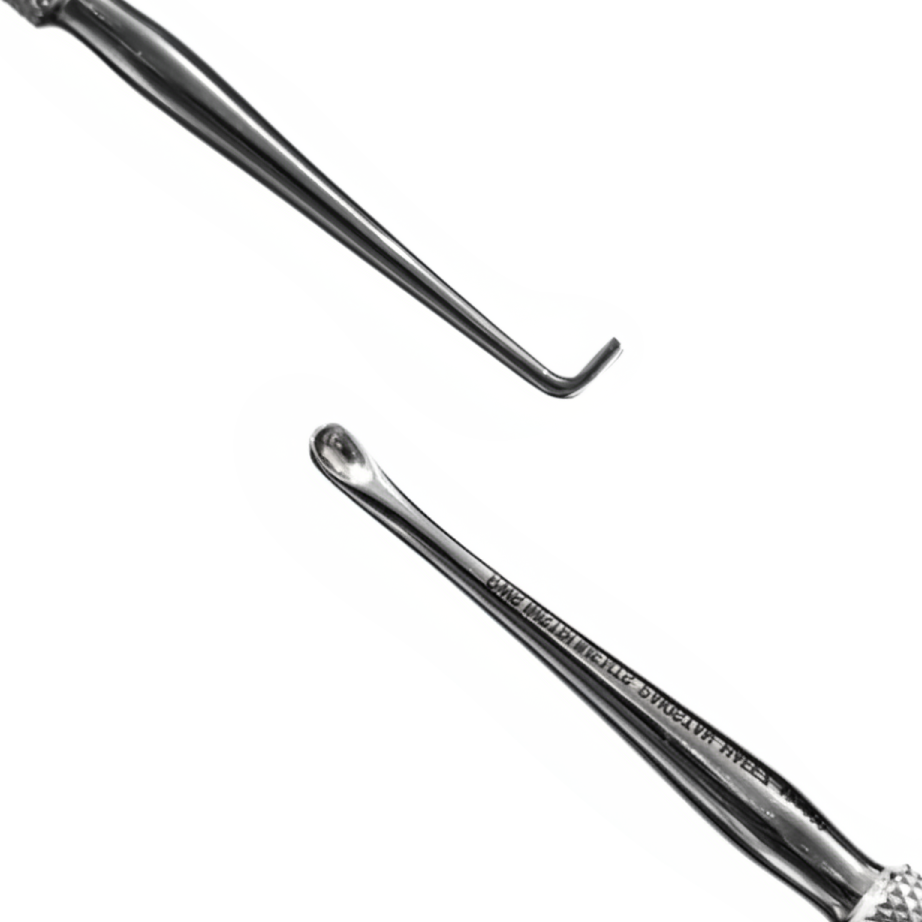 double-ended, 2.5mm x 12.5mm spoon, angled 90º, 4mm blunt hook,